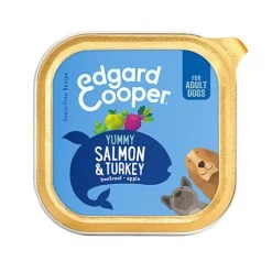 Das Adult – Lachs und Truthahn – Schale von Edgard & Cooper ist getreidefreies Nassfutter in der köstlichen Geschmacksrichtung Lachs und Truthahn. Dieses Hundefutter enthält ausgewogene und leicht verdauliche Proteine, die dafür sorgen, dass sich Ihr Hund wohlfühlt! Der Lachs ist eine gute Quelle für Omega-3-Fettsäuren, die auch dafür sorgen, dass das Fell weich und glänzend wird. Neben Fisch und Geflügel enthält es auch Innereien, was einen zusätzlichen Nährstoffschub bietet. Dazu gehört auch eine gesunde Mischung aus Früchten, Kräutern, pflanzlichen Stoffen und schonend gegartem Gemüse. Dadurch wird der Geschmack noch optimiert.