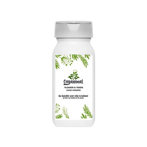 Organimal Flöhe und Zecken ist ein natürliches Produkt, das gegen Flöhe, Zecken und Läuse bei Ihrem Hund eingesetzt werden kann. Es ist 100 % natürlich und enthält eine Mischung aus Kieselgur und Neem.