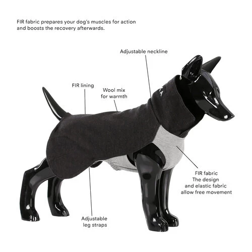 Das PAIKKA Recovery Winter Shirt bietet die perfekte Kombination aus Stil und Funktionalität. Das Hemd ist aus einer Wollmischung gefertigt. Diese Wolle ist warm, feuchtigkeitsableitend und antibakteriell. Dank des speziellen Ferninfrarot-Materials (FIR) im Shirt kann es die Durchblutung steigern und den natürlichen Erholungsprozess nach dem Sport anregen. So kann Ihr Hund stilvoll zusätzlichen Komfort und Wärme genießen.